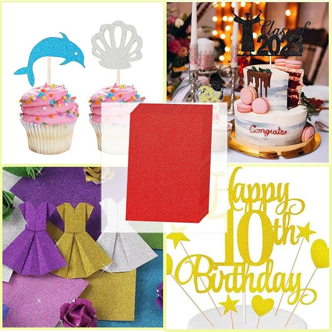 - ❀❀10 sheets Red glitter paper cardstocks, made of 250Gsm glitter cardstock paper,perfect for adding a touch of sparkle to your cupcake toppers, greeting cards, scrapbooking and more