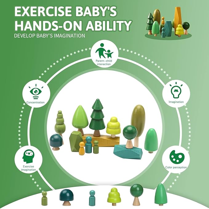 - ๐ใGreat Pre-kindergarten Toysใ: This adorable set doubles as a toy and a playroom decoration.Once your little one finishes playing with the blocks, they can put them up in the shelf case to keep them organized and off the floor. Introduceall the trees toys to your child, and let their imagination run free! inspiring your child to be creative, imaginative and curious, stacking blocks for kids are pretty fun and can keep children addicted for hours.