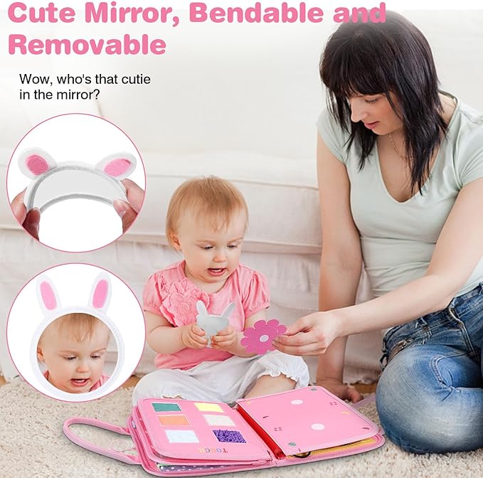 Busy Board for Toddlers, Sensory Board Travel Toys Gifts for 1 2 3 4 Year Old Girls Boys, Montessori Toys to Learn Fine Motor Skills, Educational Activities Busy Book for Airplane Car (Pink)