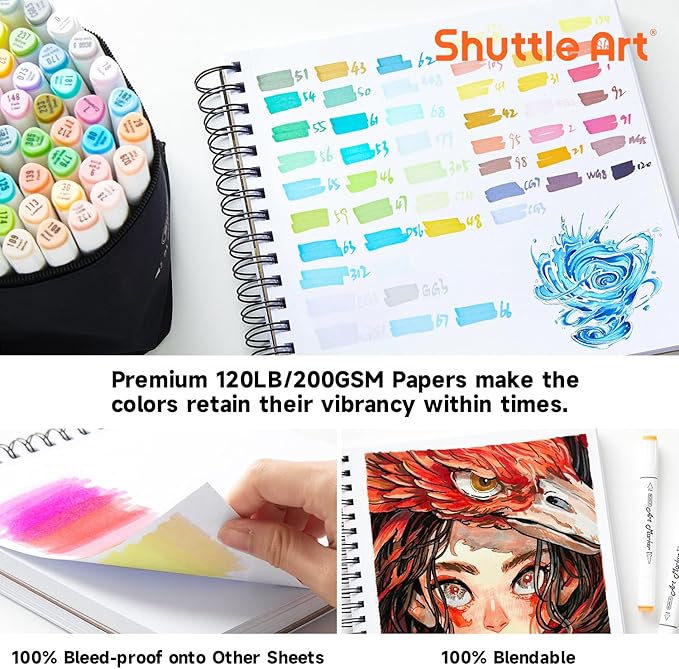 Shuttle Art Marker Pad, 8.3”x8.9” Portable Square Sketchbook, 80 Sheets Marker Drawing Paper, 120LB/200GSM Bleedproof Art Paper, Spiral-Bound, Great for Professional Artist to Draw, Paint & Sketch