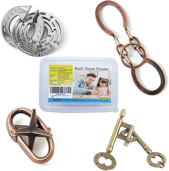 - ๐ SAFE AND DURABLE: 4 in 1 metal brain teaser puzzles are made of high quality thick and durable alloy material. Smooth and burr-free, no need to worry about scratches, perfect for long-term play.
