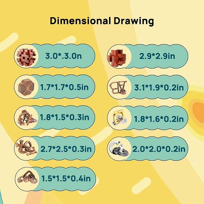 - [DURABLE AND SAFE] 3D brain teaser metal and wooden mind puzzles are well made and constructed, the IQ puzzles have great quality and held up easily and nicely, you can play or store them where you want, these logic puzzles also can be decoration at home, working desk, or coffee table.