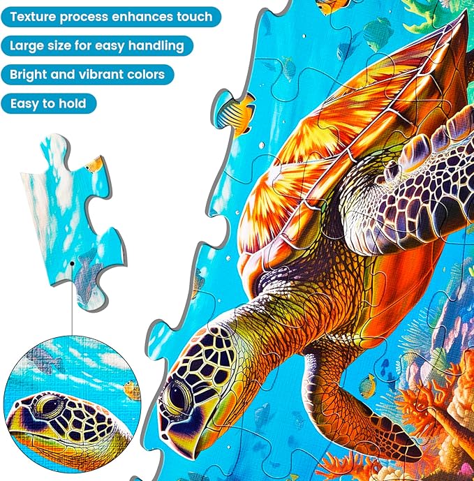 - MULTI-SENSORY EXPERIENCE: Our large piece puzzles have a unique texture and an extra-thick 0.1 in design, while providing a firm grip that won't fall off. This design is particularly beneficial for older individuals with dexterity challenges.