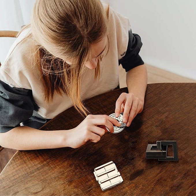 - Quality Metal Toys: Puzzles are made of durable metal with smooth rounded edges. Comes with a beautiful storage box and instructions, compact and easy to carry.