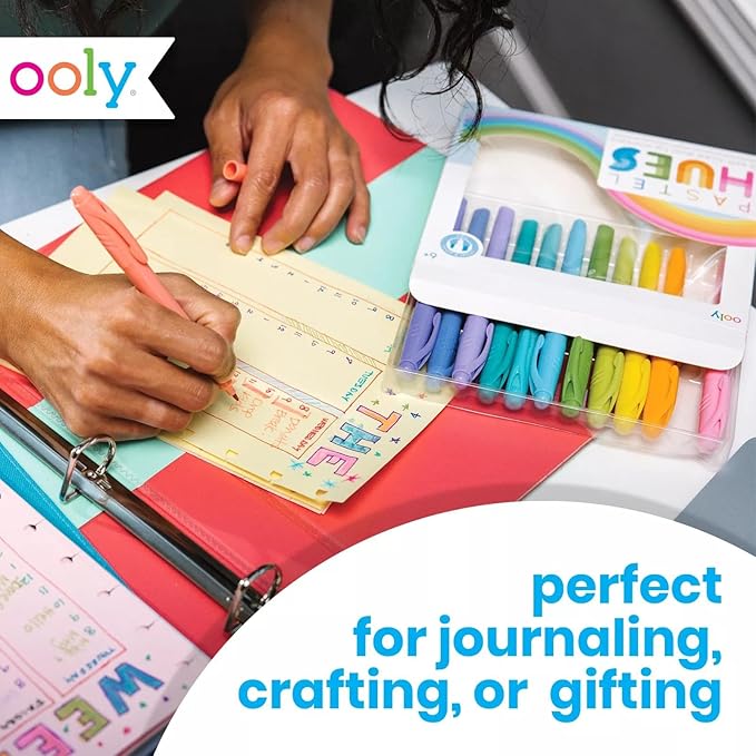 Ooly Pastel Hues Dual Tip Markers - Set of 12 Water Based Colors, Chisel and Point Tip on Each Marker for Kids, Double Ended Markers for Art Supplies & Stationery Sets - Chisel/Fine Tips