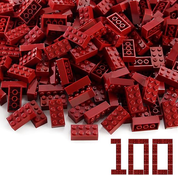 - Included: A box included 100 pieces bricks which is 2*4 dots, there are 100 pieces of Dark Red color.
