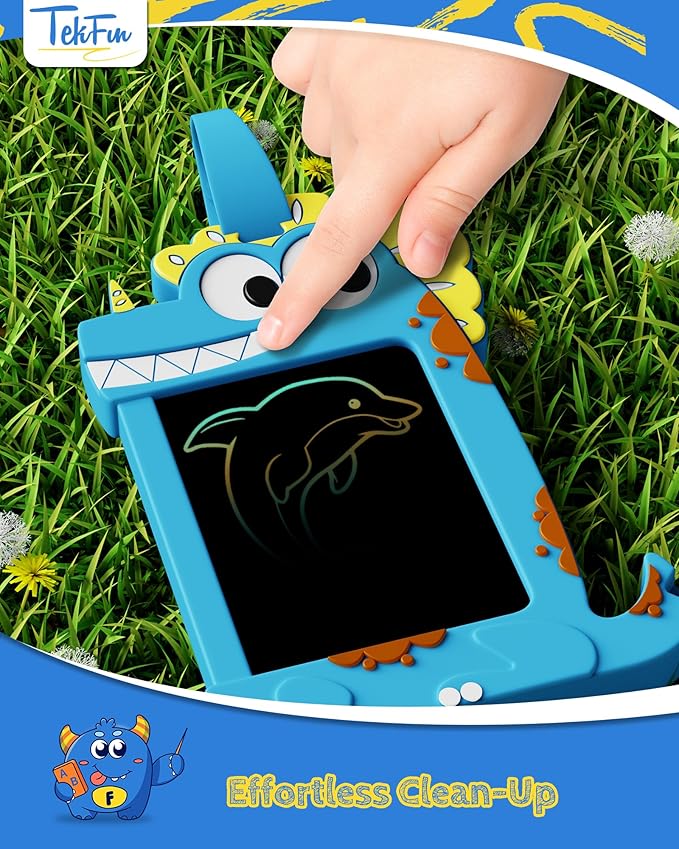 - Unique Shape- TEKFUN Sketchpad is a durable and safe Doodle board made of high-quality silicone material with a unique unicorn/dinosaur cartoon design safer pen placement, and adopts unique LCD screen technology. Not only does this mean the drawing tablet can be drawn on, erased and reused over 100,000 times, kids can also write using anything at hand - including a stylus or even a fingernail. This has also become one of the reasons why children can't put it down.