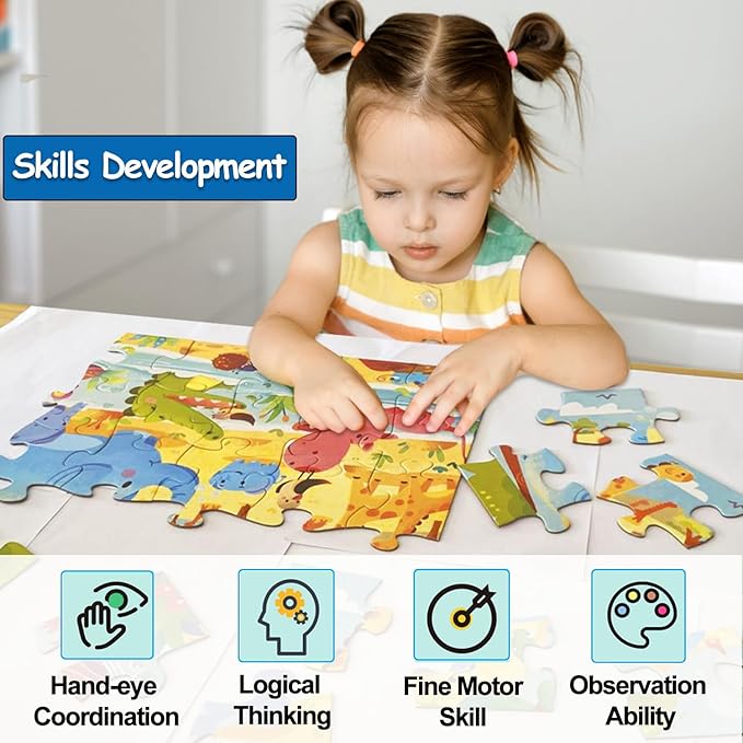 - 【High-Quality Puzzle Pieces】Each puzzle piece is made of extra-thick, durable cardboard, which is sturdy enough and do not tear. Animals puzzle is printed with non-toxic ink, with a glossy finish that is wear resistant to ensure long time storage.
