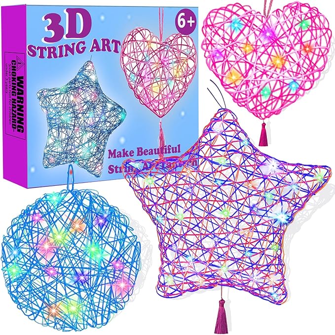 Beilunt Art and Crafts for Kids Ages 6-8, 3D String Art Kits for Girls Christmas Birthday Gifts, Crafts for Girls 8-12, Make Lantern with 20 Colored LED Bulbs for Girls 6 7 8 9 10 11 12 Year Old
