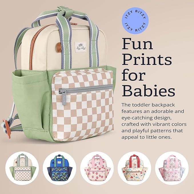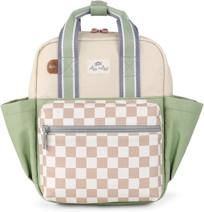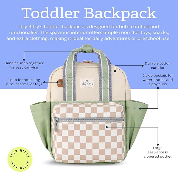 Itzy Ritzy Toddler Backpack - Daycare Bag - Features Adjustable Shoulder Straps, 2 Side Pockets & Spacious Interior with Wipeable Fabric Lining & Name Label, Checkerboard Backpack