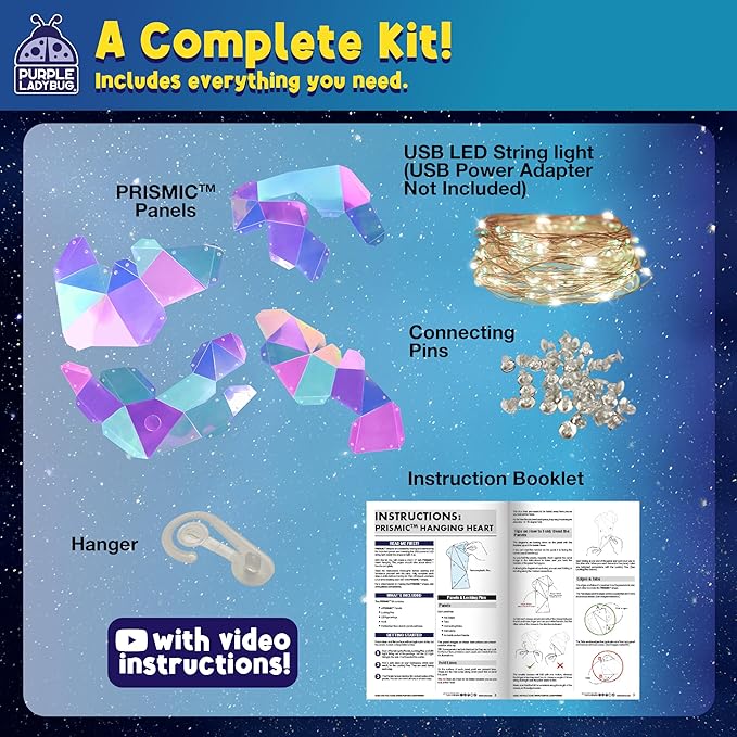 Prismic Heart-Shaped DIY Lantern Craft Kit - Brithday Gifts for Kids 8-12, Gifts for 8-12 Years Old Summer, 3D Light-Up Room Decor for Girls, Creative Night Light Arts & Crafts Set for Kids