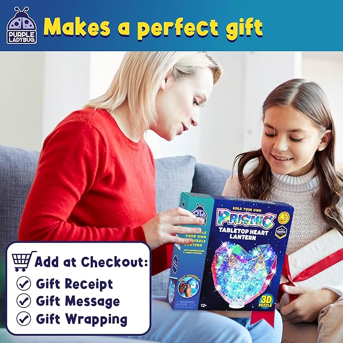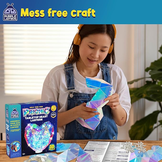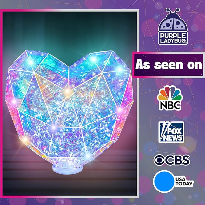 PURPLE LADYBUG Prismic Make Your Own 3D Heart Table Light for Girls, DIY Room Decor Craft, Gift for Girls 8, 9, 10, 11, 12-16 Years Old, Tweens & Teens, Birthday Gifts, Kids Arts and Crafts