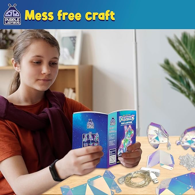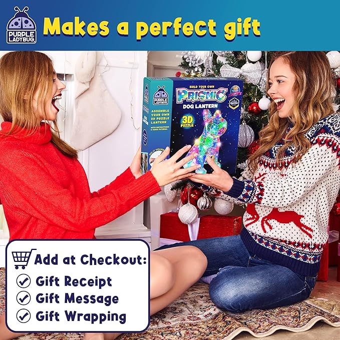 PURPLE LADYBUG Prismic 3D Puzzle Dog Lantern Kit - Light-Up Craft Activity, DIY Night Light Toy, STEM Art Project for Kids & Teens, USB-Powered Animal Decor