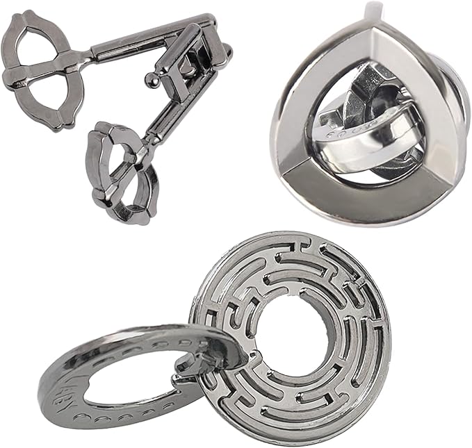 - 【DURABLE & HIGH QUALITY】- These puzzle toys made of durable copper-zinc alloy metal which is not easy to fade, smooth surface with a metallic luster also no sharp corners, safe and non-toxic children can rest assured that play.