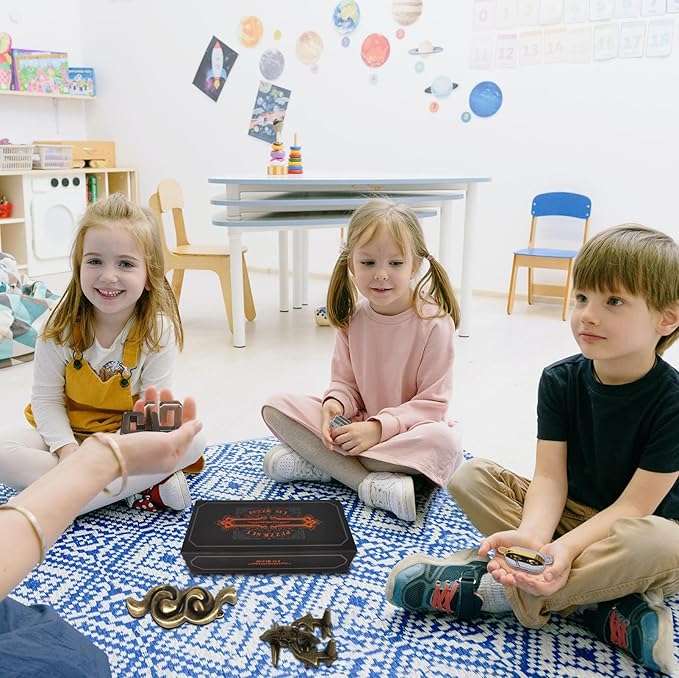 - 【3D Metal Puzzle with Storage Box and Solutions】It is a great puzzle gift for anyone aged 12 to 105. It's nice size makes it suitable for small and large hands alike. Both boys and girls, as well as men and women, will enjoy this unique novelty gift.Metal Puzzle can be played individually or with a group, making it a versatile gift option. Whether it's for birthdays, Halloween, Christmas, or party favors, this educational mind puzzle is sure to be a hit.