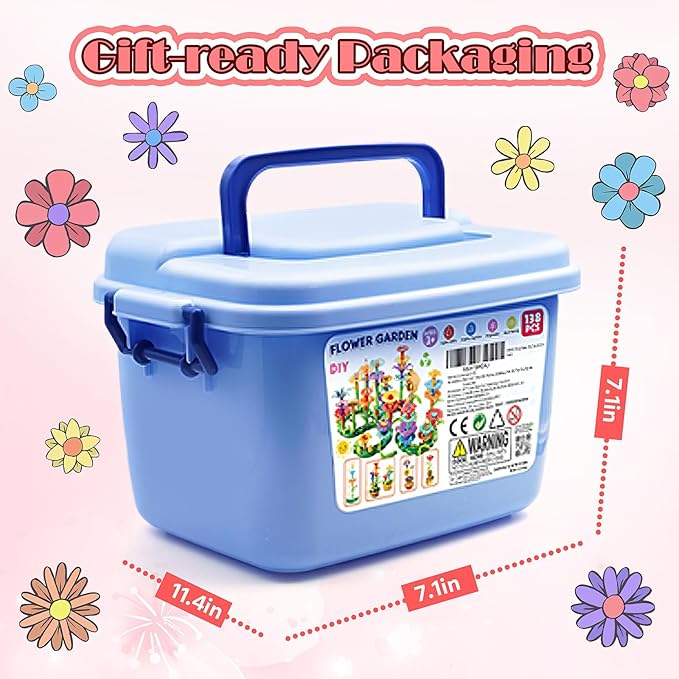 - 🌻 【Easy Storage and Portable Fun with Storage Case】Say goodbye to messy playrooms! Our flower garden set comes with a spacious, durable storage case to keep every piece organized and ready for the next adventure. The handheld case also makes it easy to take the fun anywhere—perfect for trips, playdates, or grandma’s house.