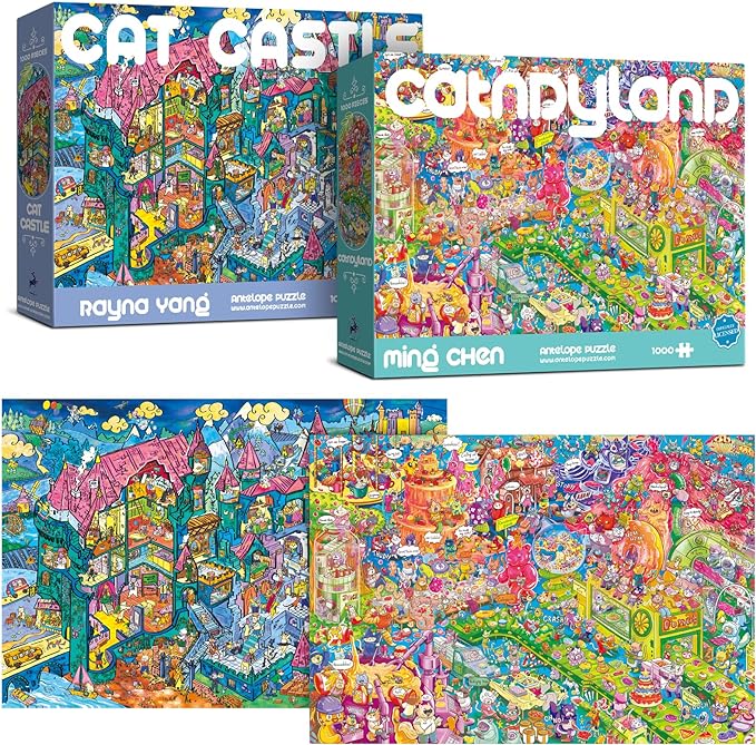 Antelope 2 in 1 1000 Piece Puzzle Bundle - Catndyland - 1000 Piece Jigsaw Puzzle with Cat Castle