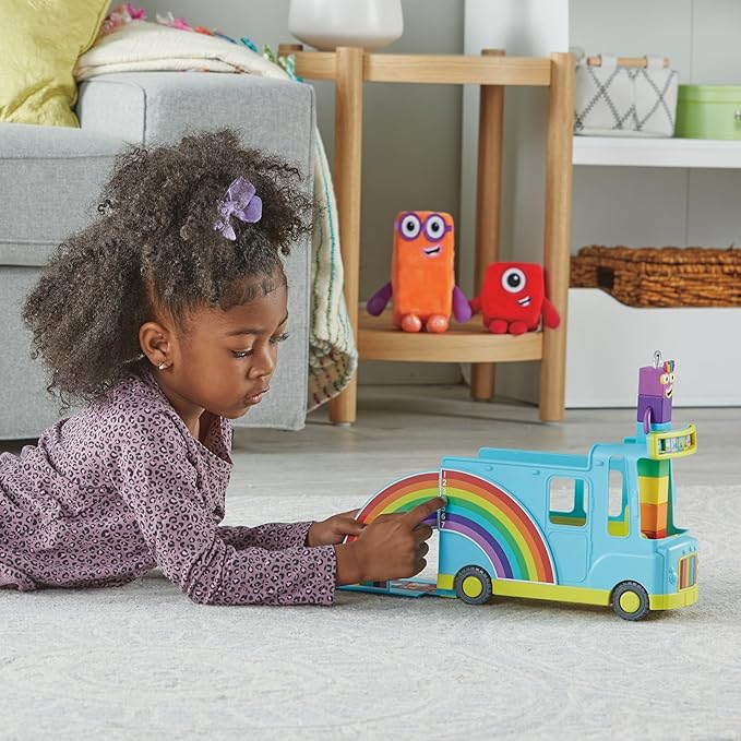 - OFFICIALLY LICENSED NUMBERBLOCKS TOYS: Join Seven on a fun-filled adventure through Numberland. Equipped with 7 seats, 12 songs and sounds, and a fold-out back that reveals a rainbow, this colorful bus is perfect for creating your own Numberblocks stories!