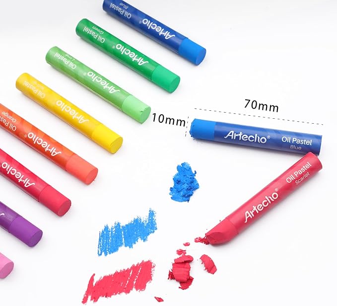 - Perfect Packaging: Humanized size design, can be easily put into all kinds of bags. Each oil pastel (70 mm × Ø 10 mm) has its own independent paper sleeve, not easy to fall off and break