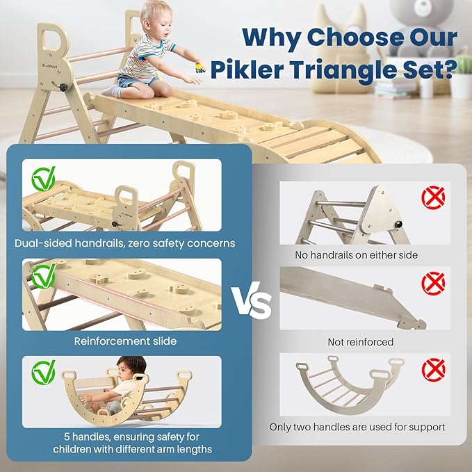 - Perfect Present for Growth: The upgraded BlueWood Climbing Set is designed for all stages of a baby’s growth. Made from natural solid wood, it offers a comfortable touch, allowing your child to grow through play and learn through life