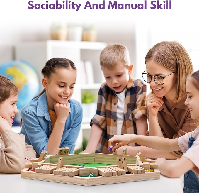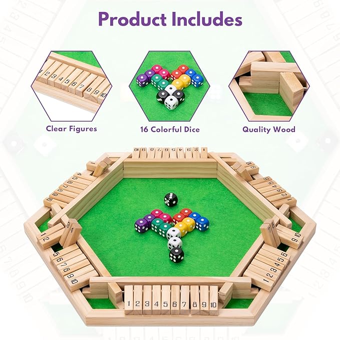 - [Multiplayer Math Game] Six-Player Shut The Box Game With 16 Dices For Family Math Challenges Upgraded 2024 version supports 6-way competition + 10-number combinations Encourages STEM learning through customizable addition/subtraction rules