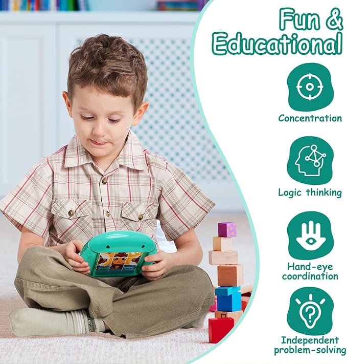 - A HANDY TOY FOR OUTINGS - Whether in the car or at a restaurant, our compact Rotating Puzzles can be carried along and it keeps children quiet and occupied. Moreover, there is no risk of missing pieces after playing with this all-in-one design puzzle!