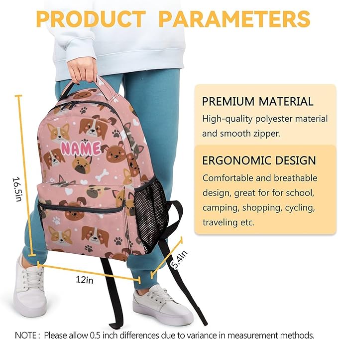- Personalized Dog Backpack: Custom a personalized name backpack for kids, our funny dog print backpack will make you child stand out from the crowd. Its cute and pretty name design adds a touch of pride to you kids, it a popular choice among preschool, kindergarten and elementary.