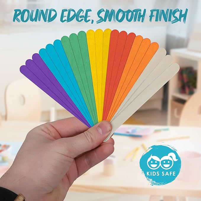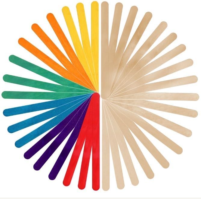 - VIBRANT RAINBOW STICKS: Take crafting up a notch with our ice cream sticks. The set features natural wood color, along with popsicle sticks in Red, Orange, Yellow, Blue, Purple, and Green.