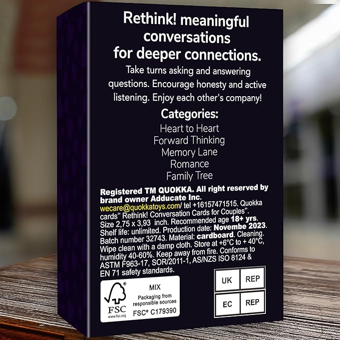 QUOKKA Conversation Cards Game - Couples Edition | Original Version | Relationship Connection - Great Board Game for Married Husband & Wife