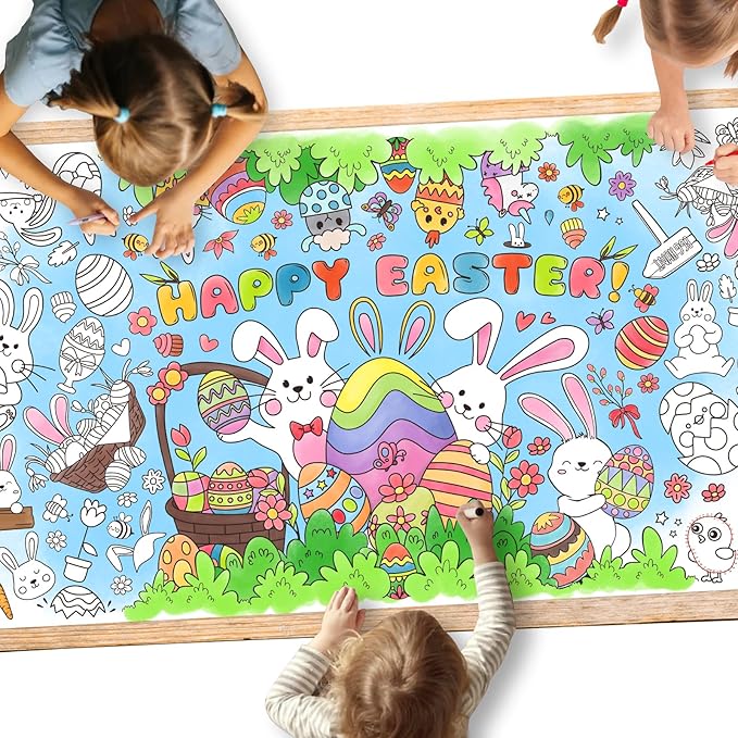 - Decorative and memorable, our large activity coloring poster adds an immersive atmosphere to your Easter party table. Once your kids have completed coloring it, keep it as a delightful souvenir for cherishing beautiful memories. Its easy roll-up feature allows for quick post-party cleaning, letting you spend more quality time with your little ones.