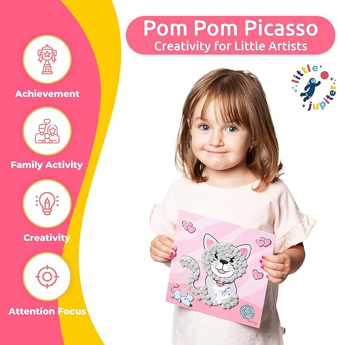 Little Jupiter DIY Pom Pom Art - Makes 10 Art Pieces for Boys & Girls - Crafts for Kids Age 3-5 - Toddler - Kids Crafts Activities