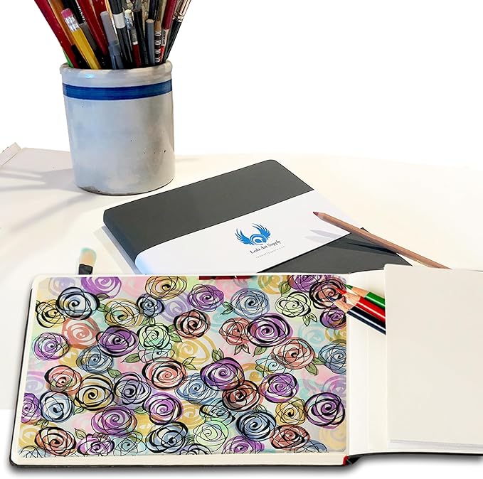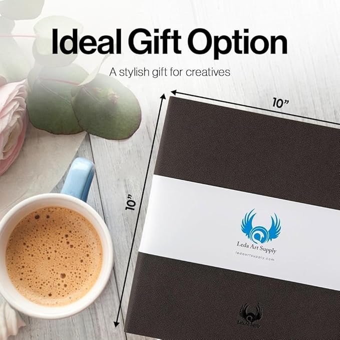Square-Shaped Sketchbook, 10 x 10 inches, Lays Flat Flexible Sketch Book for Artists, Ideal for Ink, Watercolor, Pen, Pencils, 160 Tear Resistant Pages, Size: Square Large, Leda Art Supply