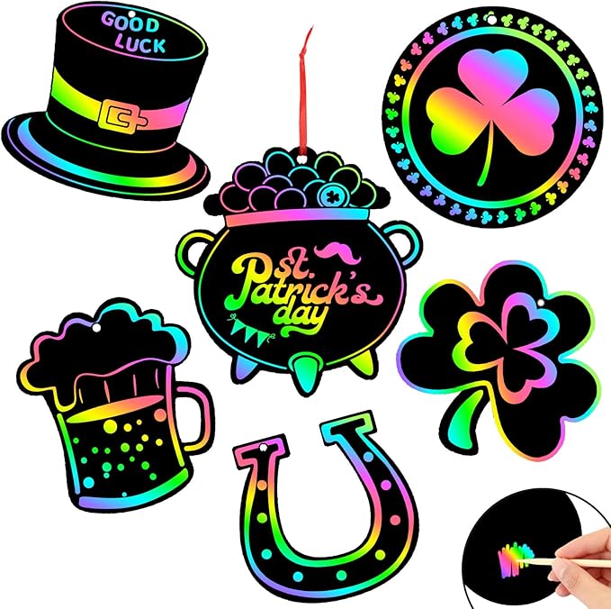 - Nice St. Patrick’s Day Ornaments: St. Patrick’s Day scratch art for kids can be used as a warm st patricks day gifts for kids.Rainbow scratch paper are widely used in various occasions, Such as St. Patrick’s Day party favors, hanging ornaments, St. Patrick’s Day decorations, kids school classroom diy crafts, etc. Also ideal for bookmarks, card making and other paper craft projects!