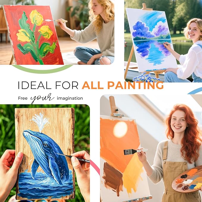 - Sturdy Double-crimped Ferrule: Chrome-plated aluminum ferrule holds securely to the brush handle, allowing you to confidently apply paint at any angle without it falling off. Everything in our watercolor, oil, acrylic and gouache paint set is easy to clean and reuse