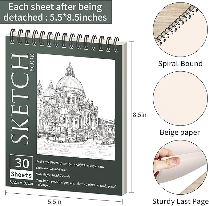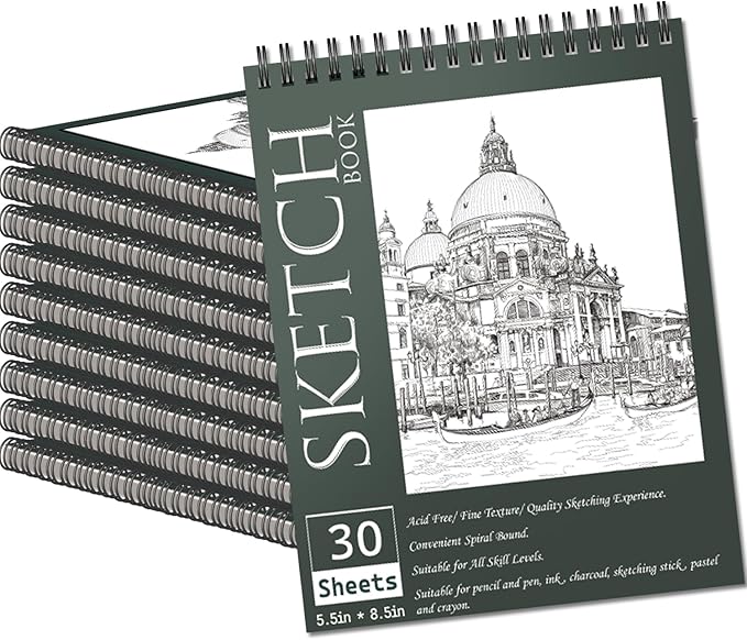 - Small Size Sketch Books: You will receive 10 sketch books, each with 30 sheets 68 lb (100gsm). It measures 5.5 x 8.5 inches, suitable to drawing and develop sketching skills.
