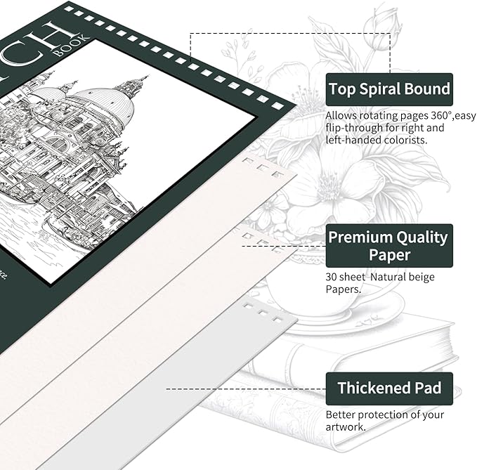 - Durable Paper: Our sketchbooks use 68lb/100gsm drawing paper, provide smooth drawing experience while you are drawing.Not easily yellowing, providing longer lasting time for your art.