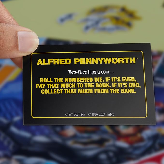 - GAMEBOARD FEATURES FAMOUS VILLAINS: In this edition, villains replace properties and Calling Cards replace Title Deeds. Travel the board using batarangs to capture villains, like Harley Quinn and The Joker