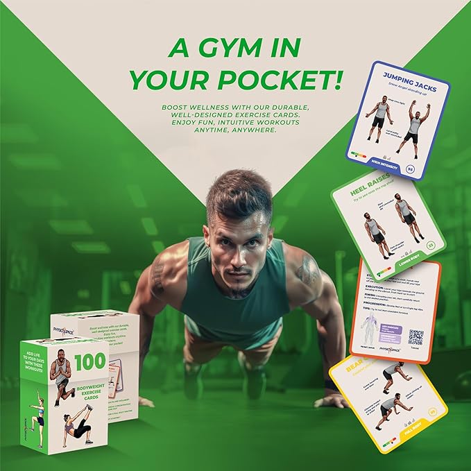 100+ Bodyweight Exercise Flashcards for Home Workout – PhysioSpace’s All in One Exercise Cards & Game Deck for Every Fitness Level with Video Tutorials (No Equipment Needed)