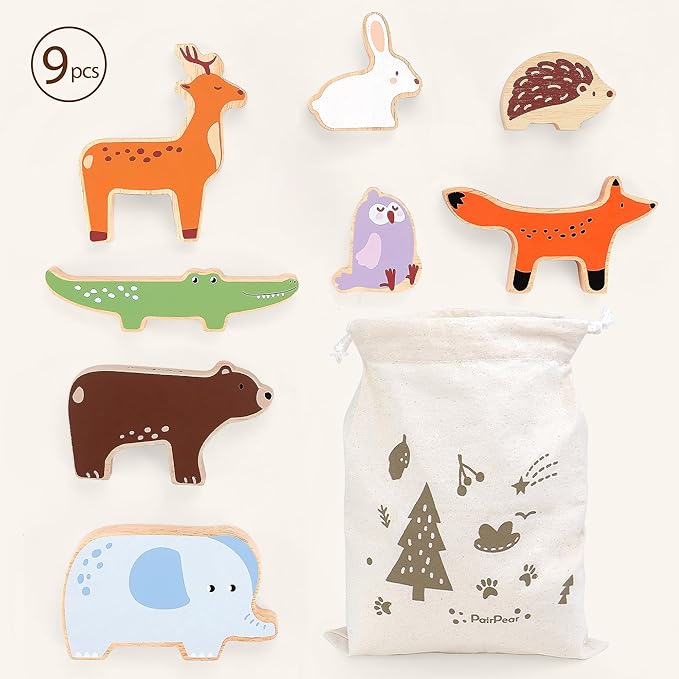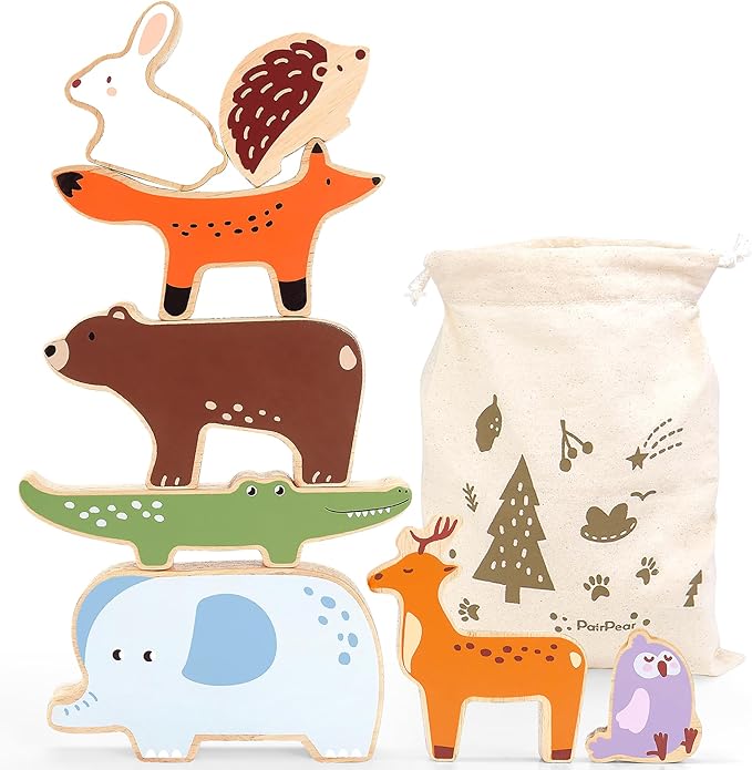 - Wooden Stacking Blocks: Step into the wild with PairPear oversized wooden animal stacker! These Large blocks are designed for little hands, making stacking a breeze and boosting little ones' confidence as they conquer the towering animal stack