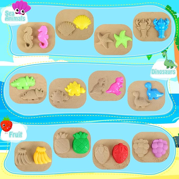 - Creactive Sand Castle Molds & Tools --- This kids beach toys set includes large, middle and small sand castle molds. Kids can combine them to make wonderfull castles. Other molds such as sea animals, dinosaurs, fruits will also add more beach fun. All the sand molds and tools are made in bright colors and vivid shapes, encouraging kids to use their creativity! Our pop up sand toys and bucket set is super fun beach accessories for kids. Perfct beach sand castle building kit and toys