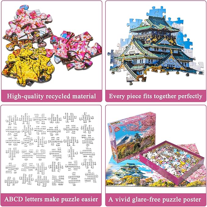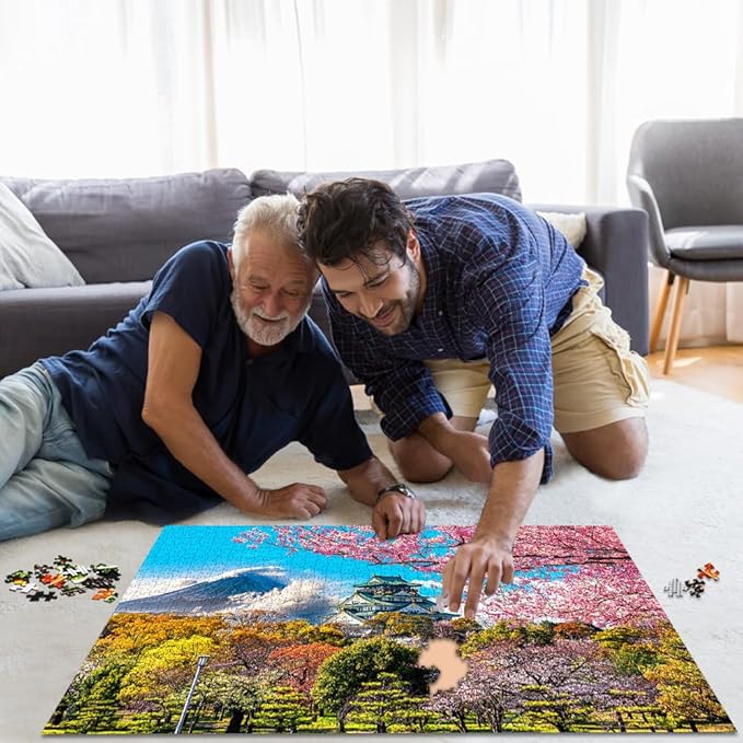 HUADADA 1000 Piece Puzzles for Adults - Cherry Blossoms in Osaka Castle, Japan - Jigsaw Puzzles for Adults and Kids 1000 Piece Educational Games Colorful Puzzles for Home Decoration