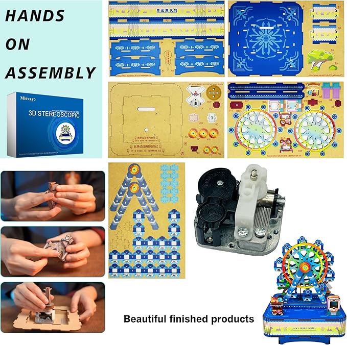 - 3d puzzle - mechanical music boxes, colorful buildings, rotating Ferris wheels play music interactive, diy assembled finished product is a fascinating and enjoyable work of art.