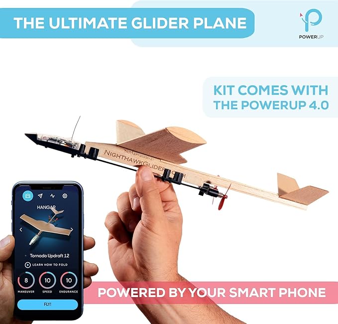 - THE POWERUP 4.0 - Fly the first ever smartphone-controlled paper airplane with this Balsa Wood airplane Kit! Not yet familiar with the POWERUP RC flying system? This balsa wood model coupled with the POWERUP 4.0 is a great way to start enjoying STEM building hobby. Learning to fly is easy with our plane’s auto-pilot and gyro stabilization features.