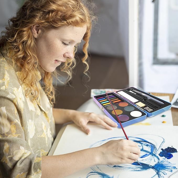 - PREMIUM WATERCOLOR SET WITH EVERYTHING YOU NEED: This comprehensive travel watercolor kit equips you with all the essentials for painting at home or on-the-go. It includes 1 drawing pencil, 1 natural sponge, 1 sheet of colored paper, 1 water brush pen, 1 detail brush, 1 eraser, and a pencil sharpener. With the most complete set of watercolor accessories, this watercolor kit is the ideal choice for artists, hobbyists, and painting enthusiasts