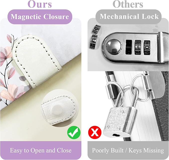 - Built for Daily Use: Featuring a durable, water-resistant hard cover, a sparkling crystal-topped pen, and a magnetic closure that keeps everything secure and doubles as a pen holder for added convenience.