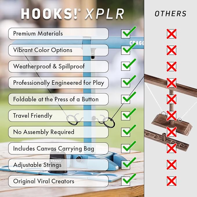 Craggy Games Ring Toss & Shot Ladder Game Hooks XPLR - Portable Aluminum Hook and Ring for Indoor/Outdoor Games - Family Game Night, Party Games, Travel, Multiplayer Kids and Adults