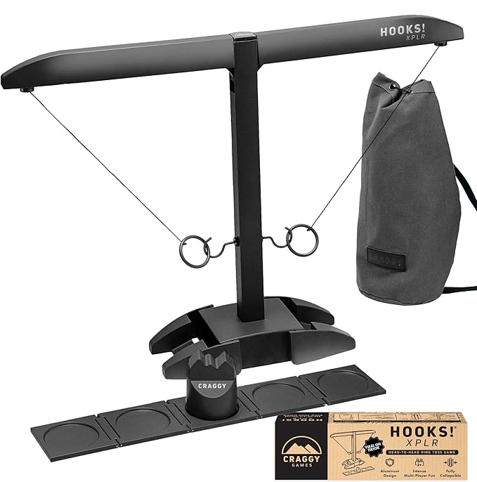 Craggy Games Ring Toss & Shot Ladder Game Hooks XPLR - Portable Aluminum Hook and Ring for Indoor/Outdoor Games - Family Game Night, Party Games, Travel, Multiplayer Kids and Adults