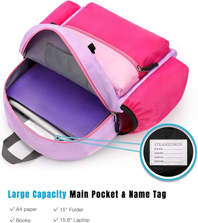 STEAMEDBUN Kids Backpack for Girls 4-6: Girls Backpacks for Elementary - 15 inch Backpack for Kindergarten