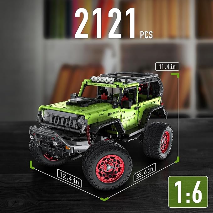 Remote Control Jeep Wrange 4x4 Building Kits, 1:6 Technique Motorized Off Road Pickup Set - with 4 Black Motors, All Terrain Design - STEM Engineering Gift for Adults & Teens (2121 PCS)