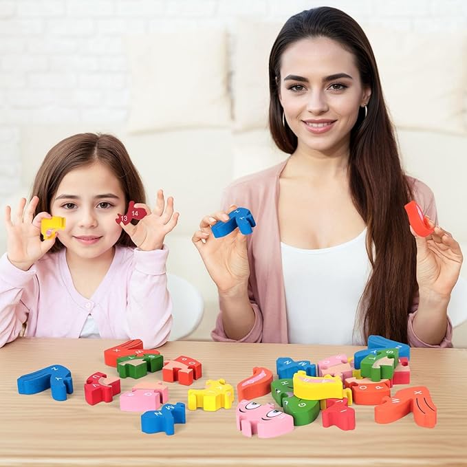 - Child-Safe Quality - Crafted from high-quality wood, our English letter puzzle is durable and compliant with U.S. toys standards. Safety tests have been successfully conducted, ensuring peace of mind for parents. Each block is coated with water-based paint, offering vibrant colors, while the wood surface is smooth and won't hurt child's body, making it safe for your kid to enjoy